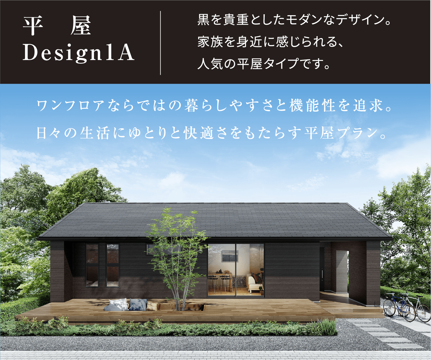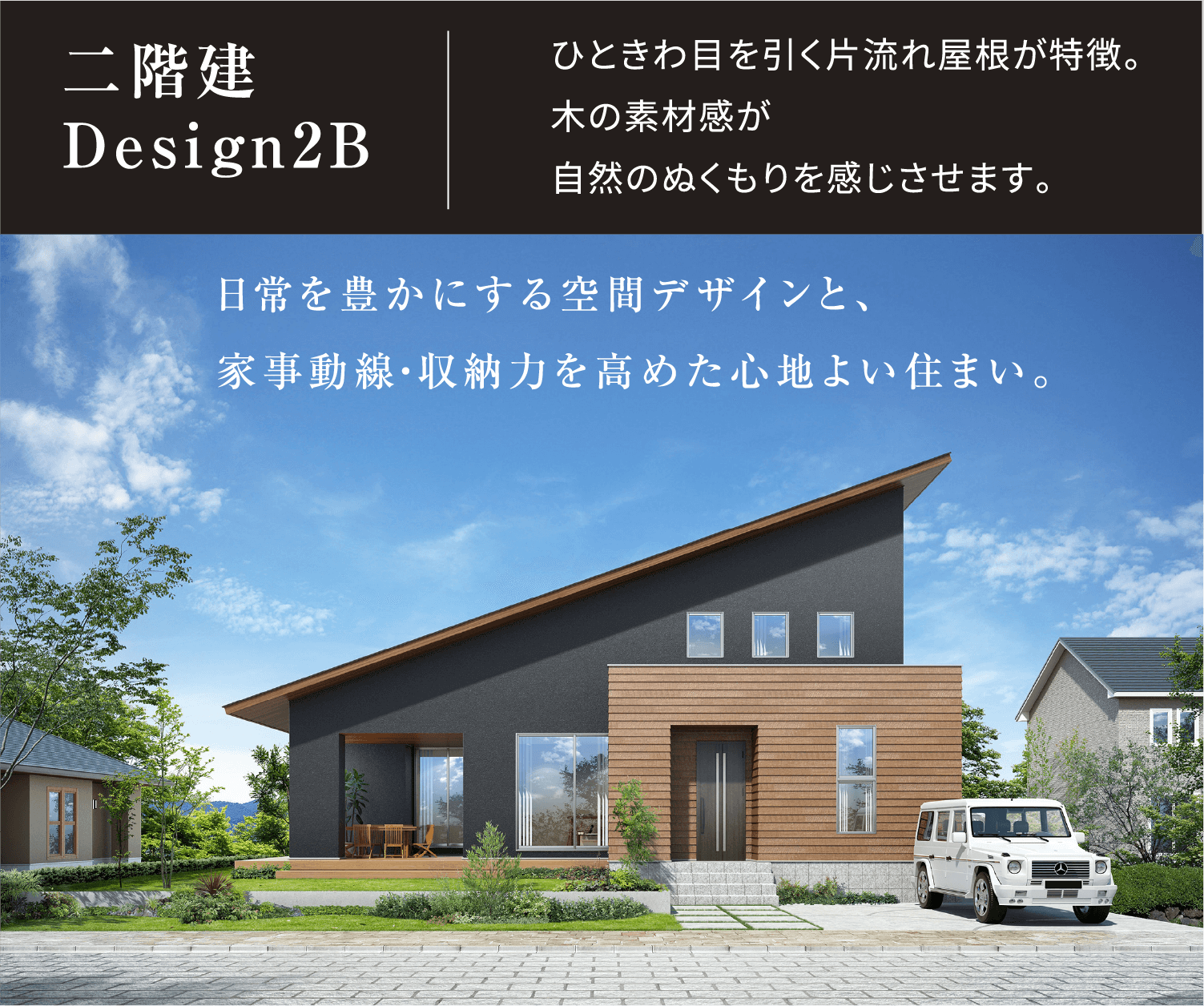 シンプルながら個性的な外観フォルムはどの世代にも人気のデザイン。下記プラン例の他にもご希望の間取りで設計いたします。