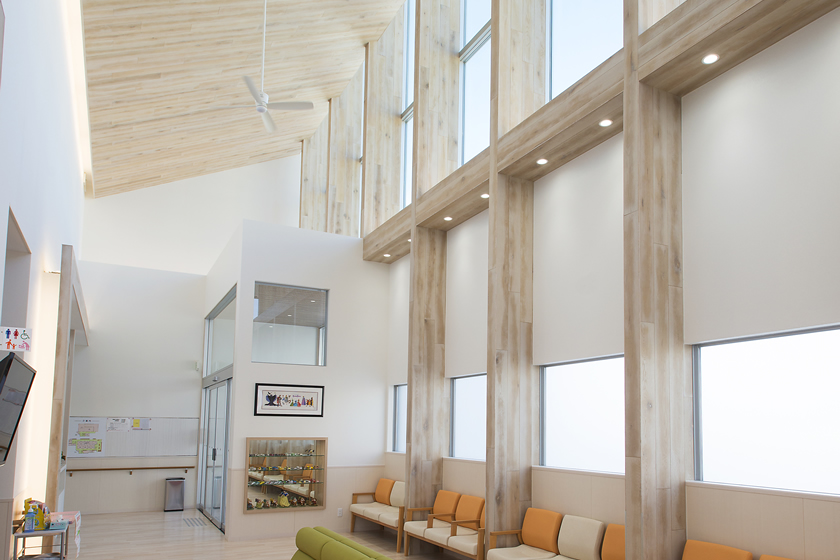 屋根:ガルバリウム鋼板 内装(天井・壁一部):天然木突板張り