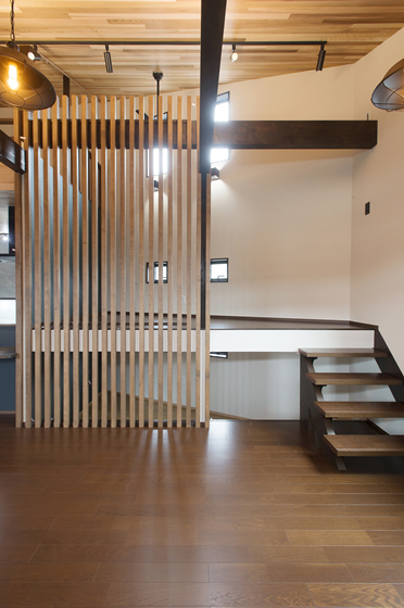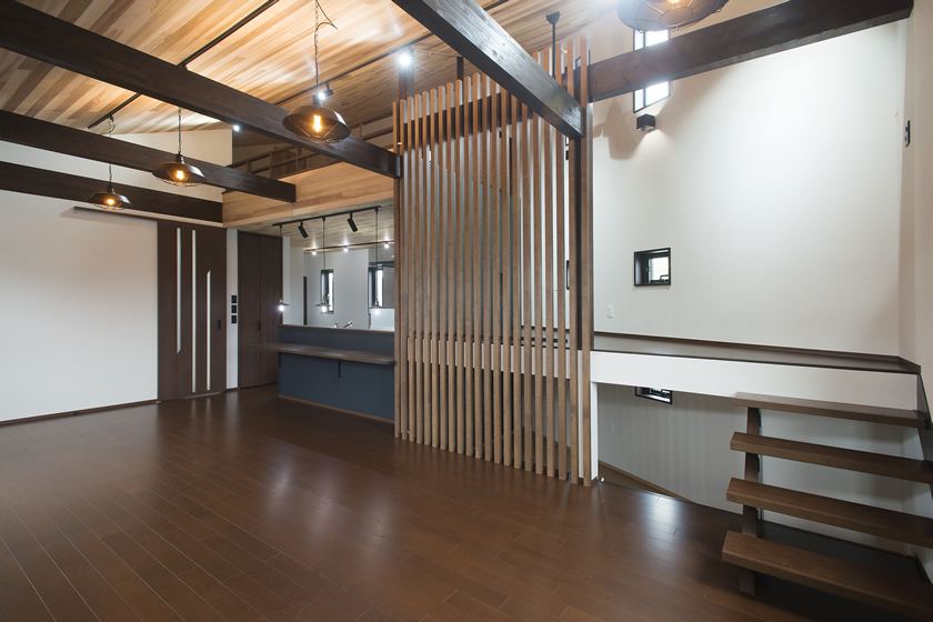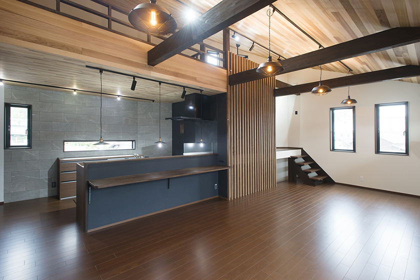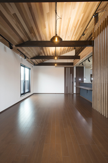 2Fリビング 勾配天井 天井:ウエスタンレッドシダー
